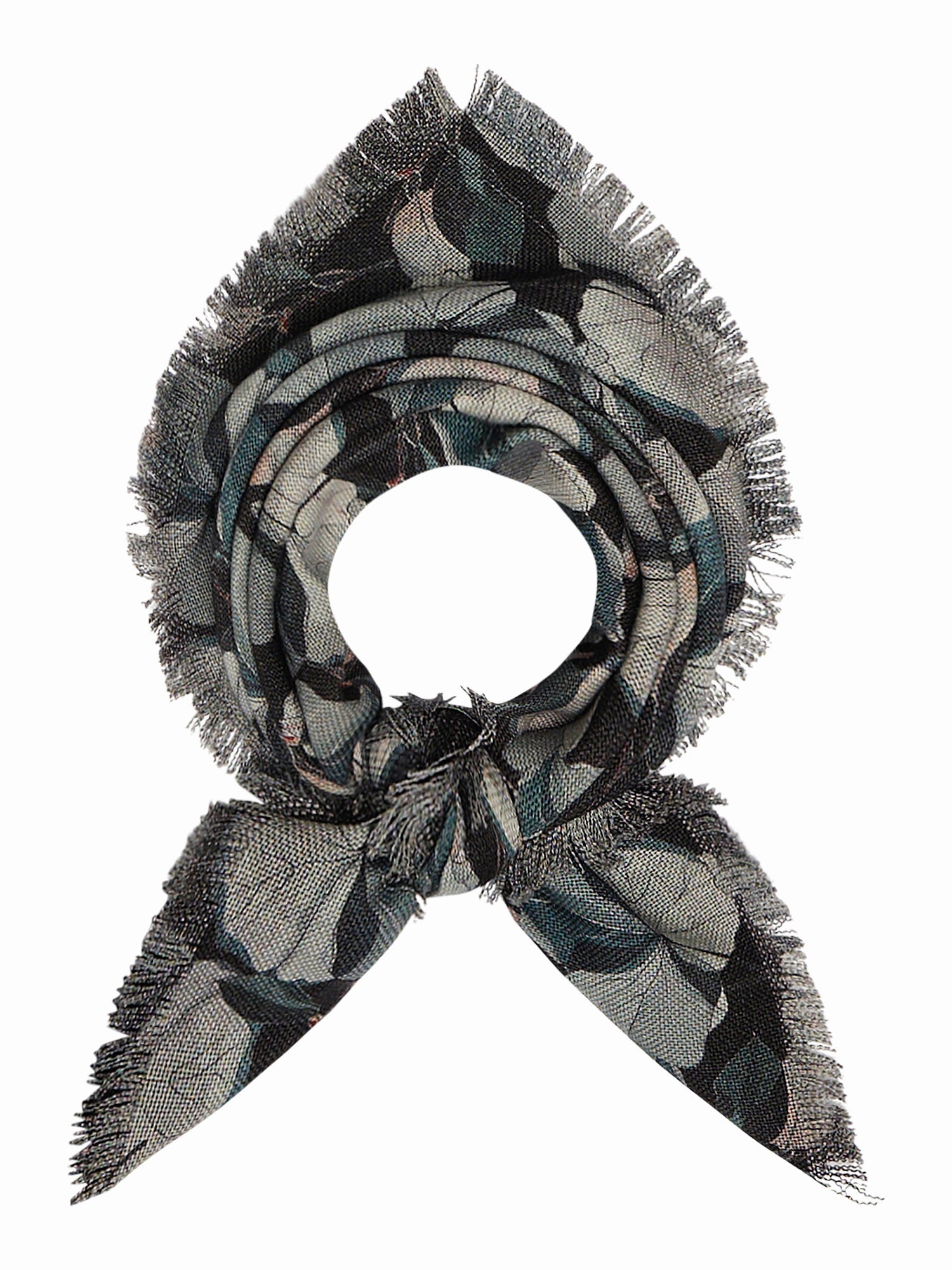 Style it with: a black wool coat for a striking pop of print, or reverse to the leafy side for a refined everyday layer.
