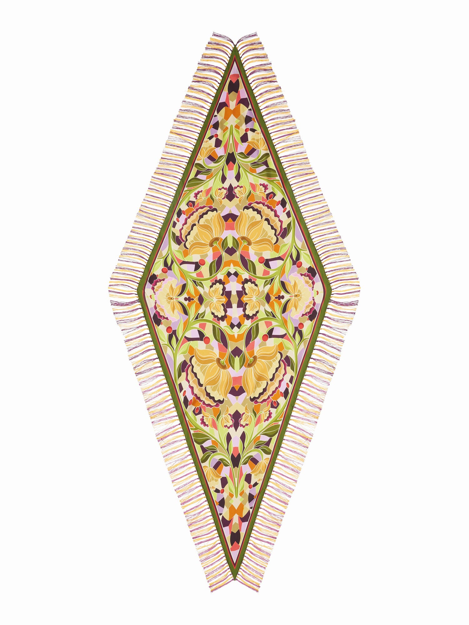 A vibrant celebration of Italian artistry, the Franco Ferrari Silk Fringe Scarves are statement accessories that blend bold color, intricate prints, and luxurious craftsmanship. Each scarf is crafted in sumptuous silk and finished with long, elegant fringe that adds playful movement and a touch of drama. From vivid tropical motifs and mosaic patterns to softer, nature-inspired prints, these scarves are designed to elevate any outfit—whether worn draped, tied, wrapped, or styled as a headpiece.