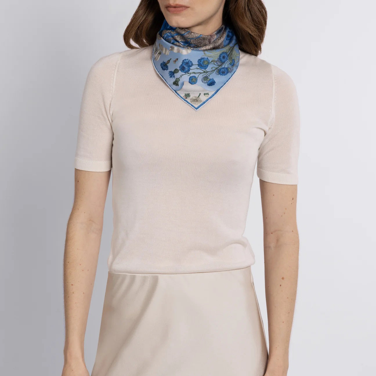 SABINA SAVAGE - LONDON BRIDGE IS FALLING DOWN SILK TWILL SCARF 42CM POWDER/FROST