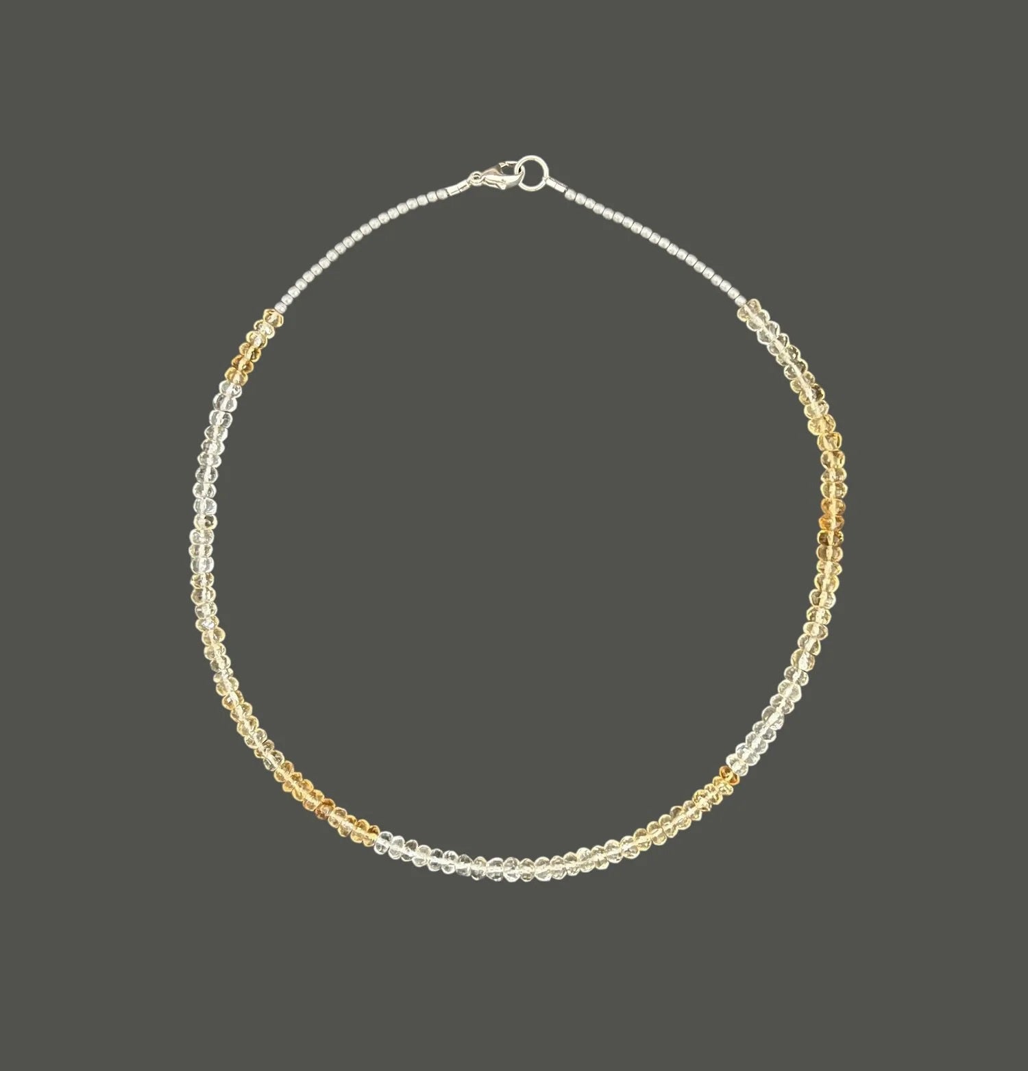 Ras du cou necklace of faceted citrine and brass with sterling silver clasp