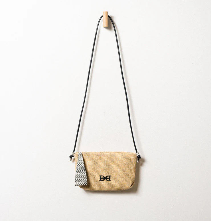 Wrist strap Adjustable strap One interior zipped pocket Inside key holder ring with leather strap Width: 25 cm (9.84"), Height: 18 cm (7"), Depth: 5 cm (1.96") Leather and straw