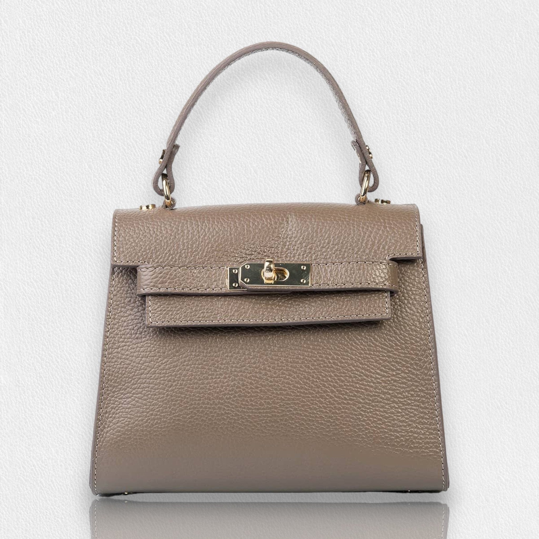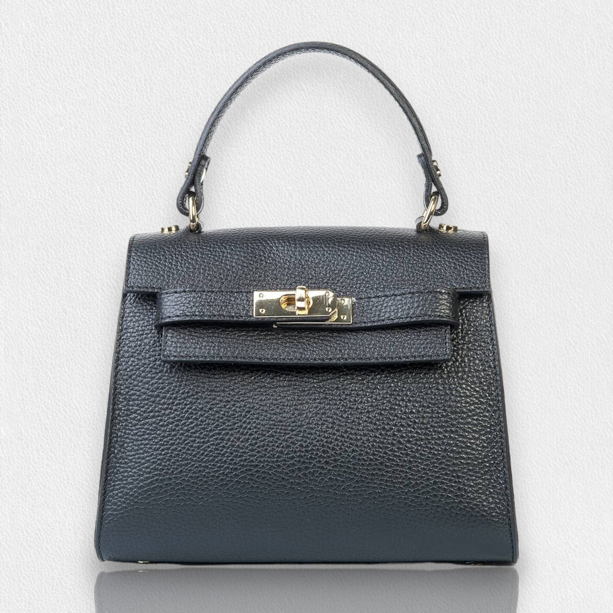 Key Features: High-quality pebbled leather – Offers durability and a refined texture. Structured silhouette – Retains its shape, giving it a polished and elegant appearance. Top-handle design – Perfect for carrying by hand or with an optional strap for versatility. Gold-tone turn-lock closure – Adds a sophisticated touch while keeping belongings secure. Compact yet spacious – Ideal for carrying essentials like a wallet, phone, keys, and cosmetics.