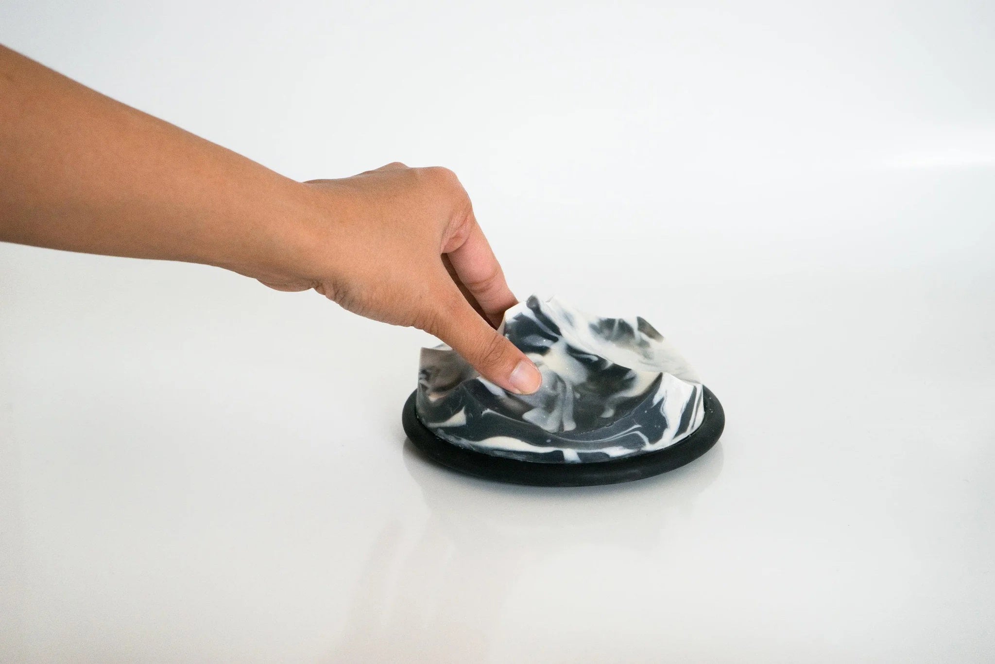 Brush wet hands or cloth over the soap's surfaces to create, lather, release the aromatic essential oils and reveal the changing curves.