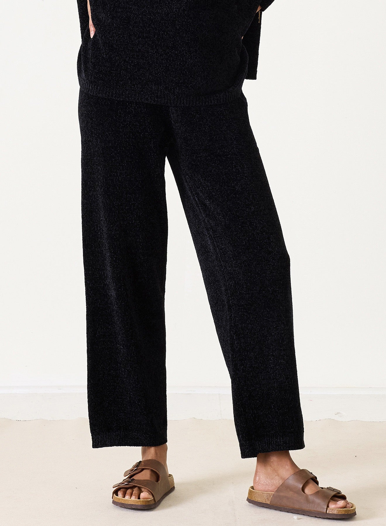 Perfectly versatile, they can be dressed up with a chic sweater and boots or kept casual with a tee and slides. In their plush, velvety texture, these pants redefine elevated loungewear—cozy enough for home, polished enough for stepping out.