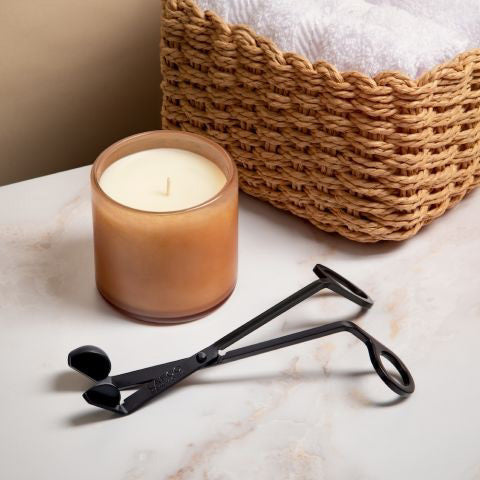 Exclusively designed by LAFCO New York, this luxurious, thoughtfully crafted wick trimmer simultaneously trims and snuffs the wick with a special blade and stores the trimming until it can be easily disposed of. Our trimmer has been designed to be used on a burning or extinguished wick