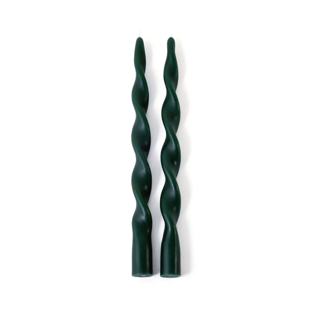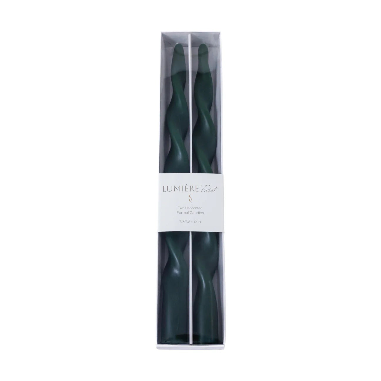 LUMIERE TWIST TAPER CANDLES - SET OF 2 IN GREEN