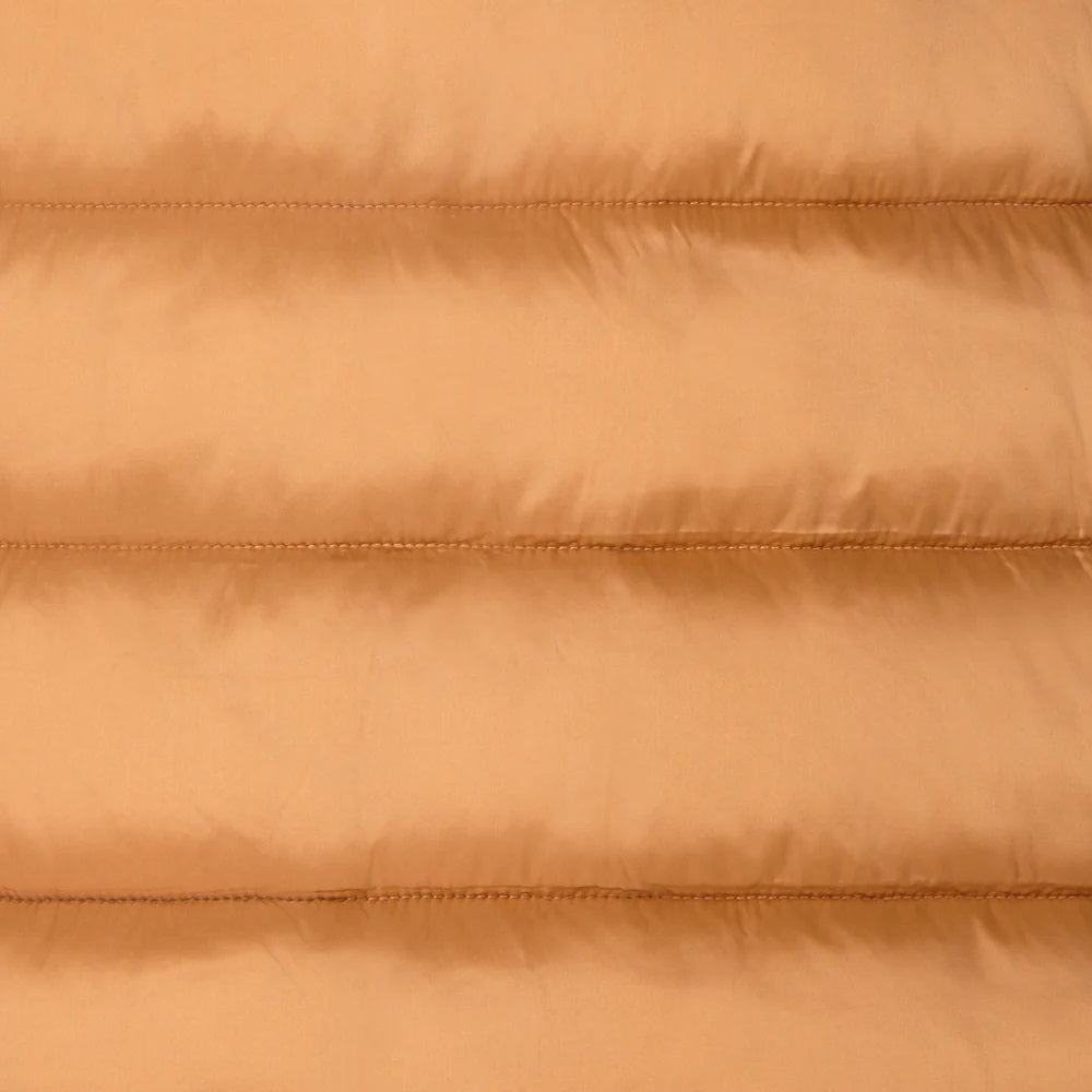 Made from nylon with a high-shine finish, the Elsie model women’s puffer jacket stands out for its funnel neck and A-line silhouette with horizontal quilting. Lightweight and cozy, it features tonal accents throughout, including a custom zipper puller and a round logo patch on the left sleeve. A polished piece designed for everyday versatility.