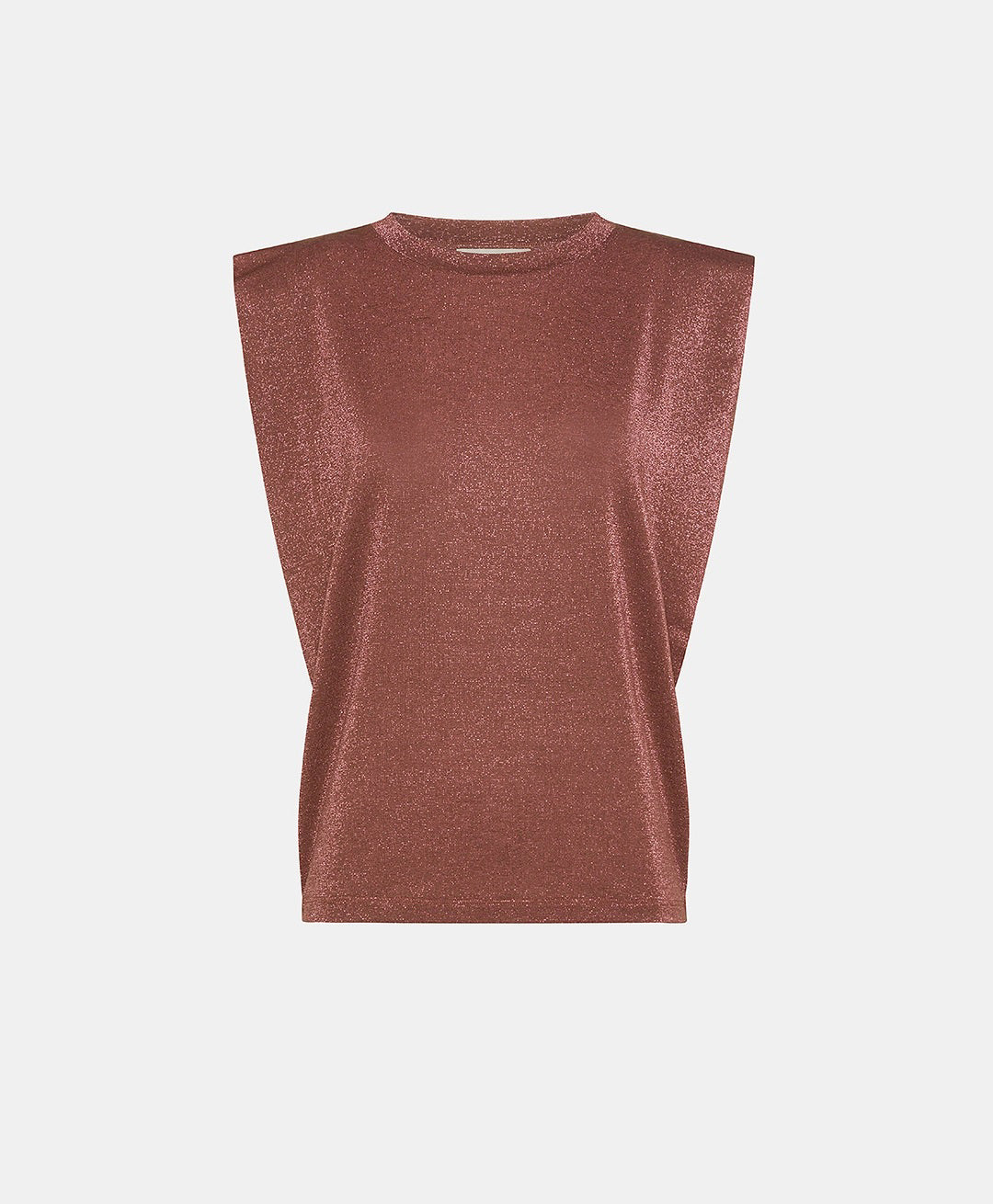 Carry-over round-neck top with oversize shoulders in lurex jersey. Straight, minimalist cut. A basic item in a new 80s interpretation, perfect to add a cool touch to every outfit.