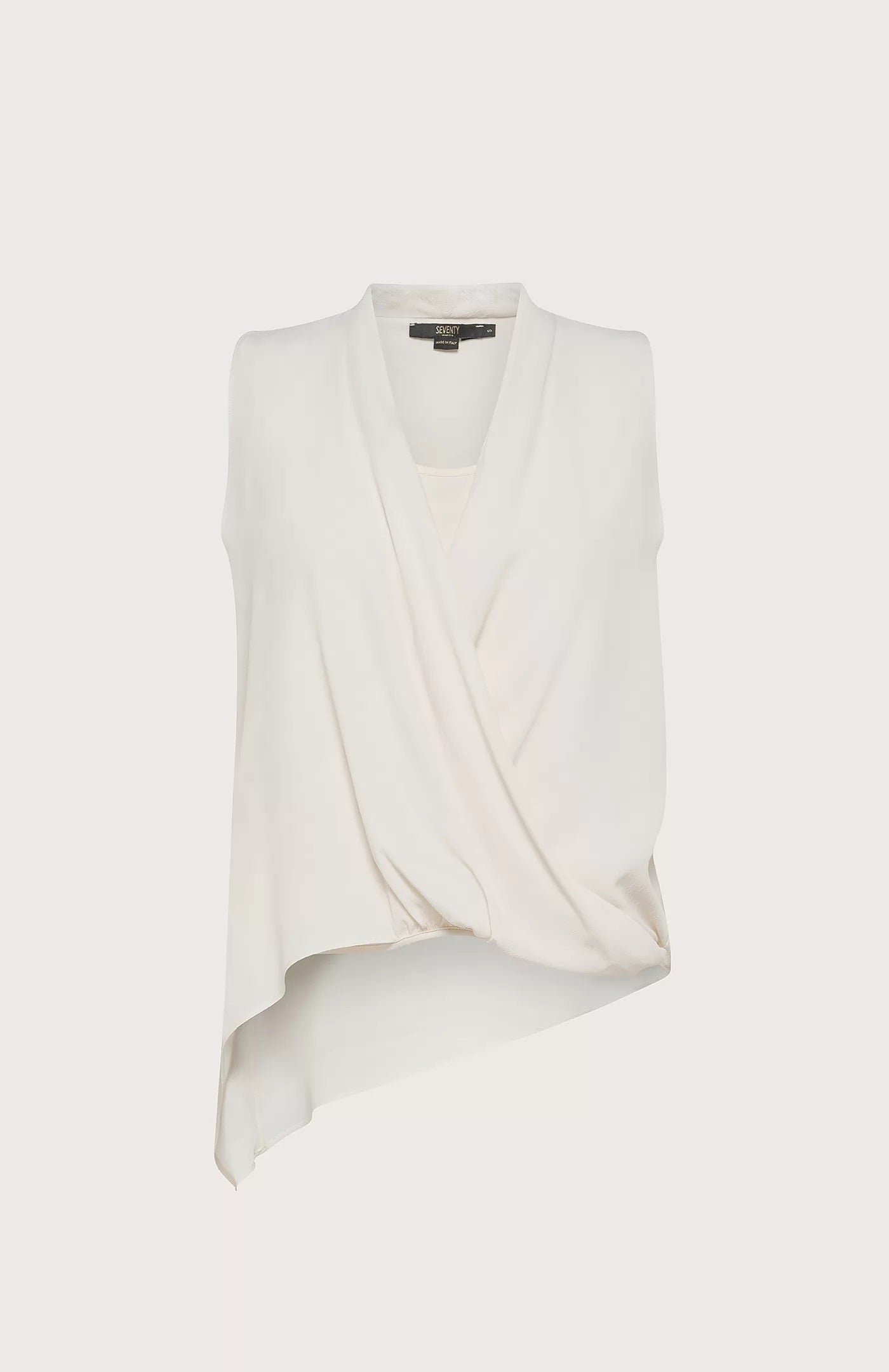 Seventy Venezia silk-blend crêpe-de-chine sleeveless jersey, featuring an asymmetric crossed design, V-shaped shawl collar, and folded hemline