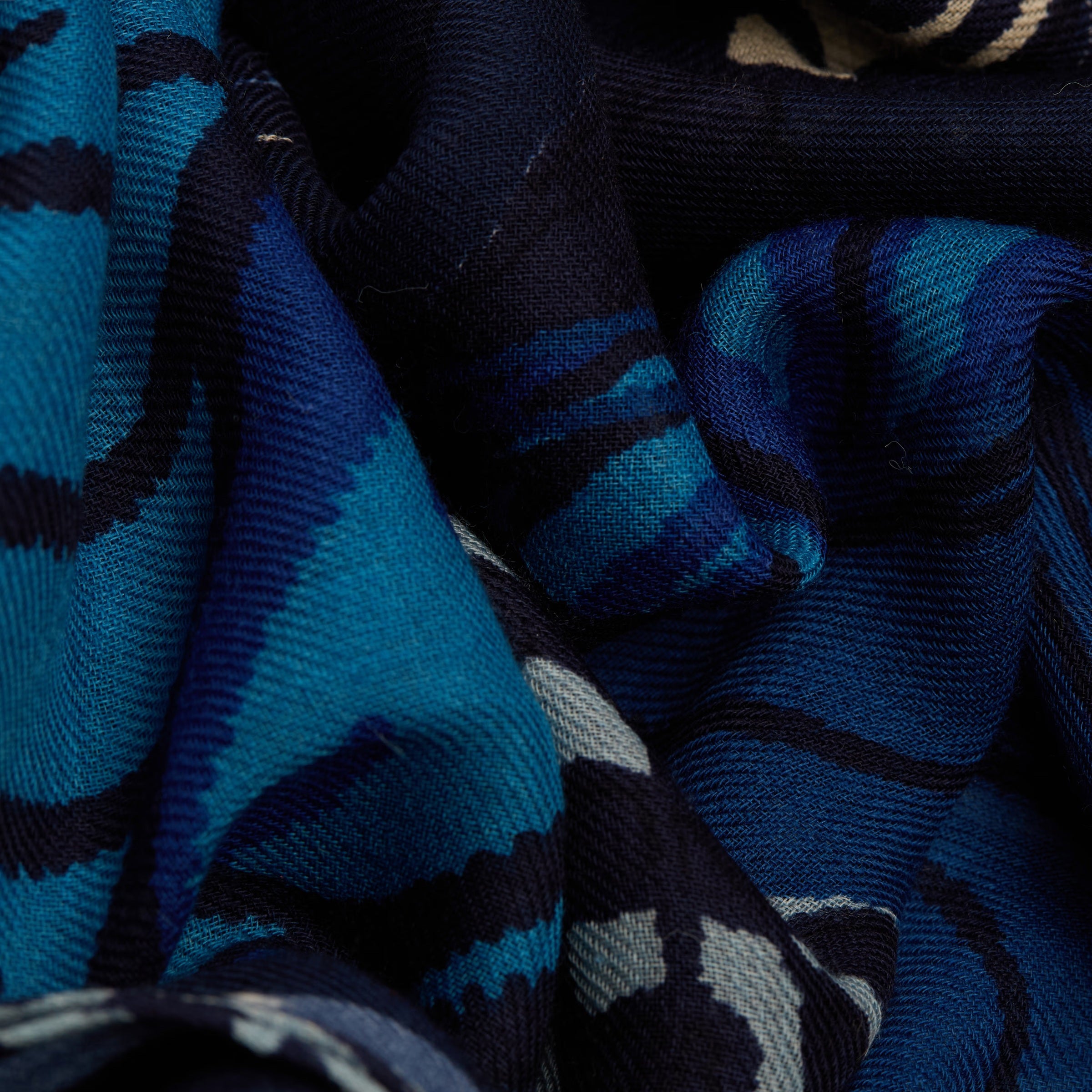 INOUI EDITIONS - PAPILLON (BUTTERFLIES) SQUARE WOOL SCARF IN BLUE