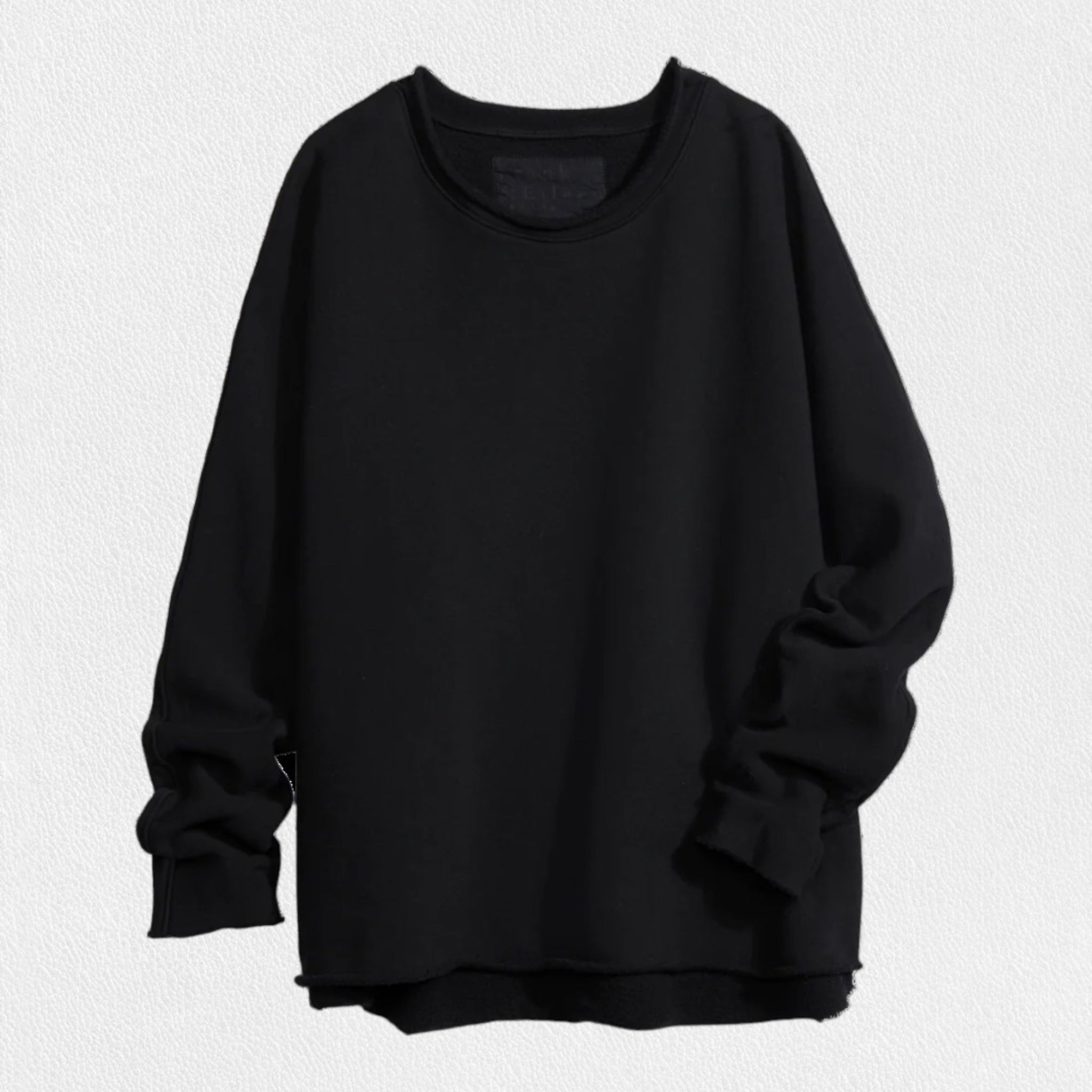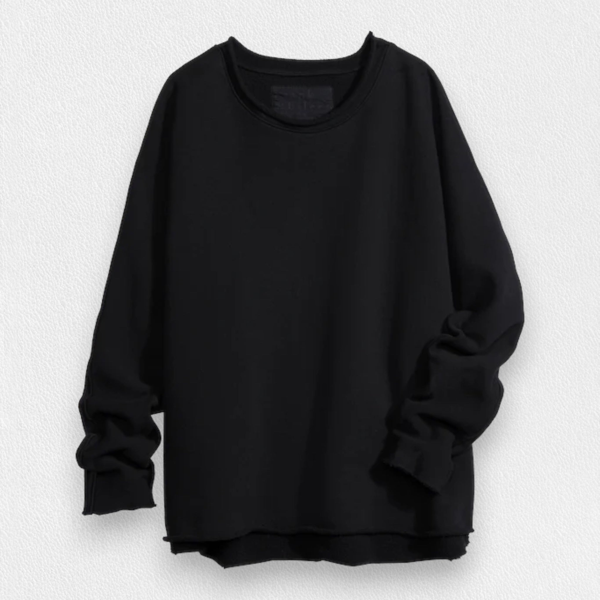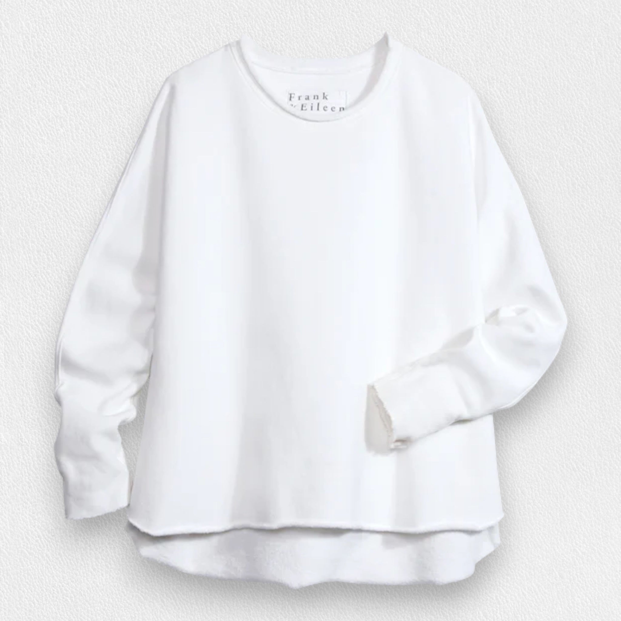 Hand-cut raw hem and cuffs Rolled crew neck Long continuous sleeves Signature capelet side slits Simone is 5'8" with a 34" bust wearing a size S Turn this garment inside out, machine wash on cold with like colors, and tumble dry on low