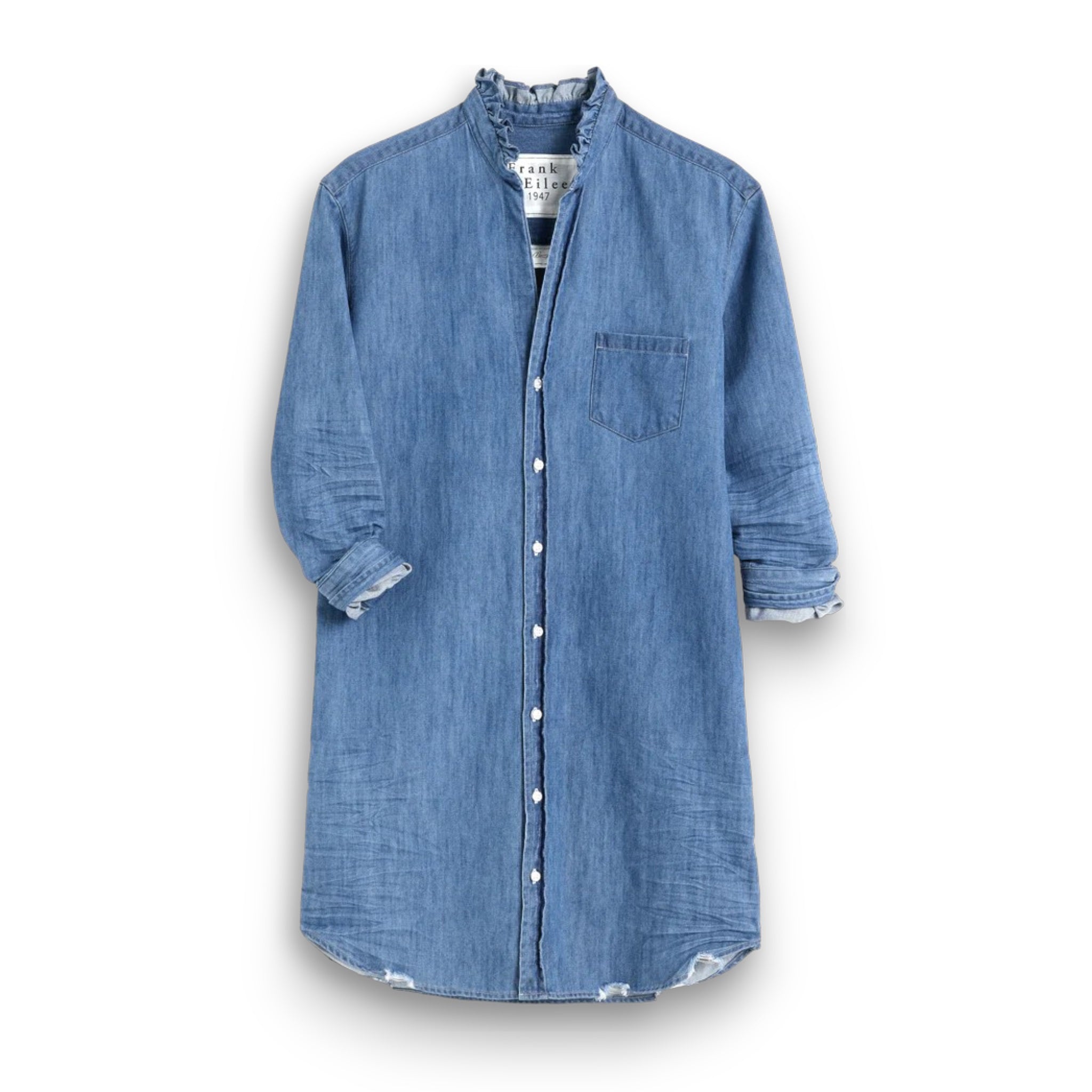FRANK AND EILEEN - MARY RUFFLE SHIRTDRESS IN VINTAGE STONE WASHED INDIGO