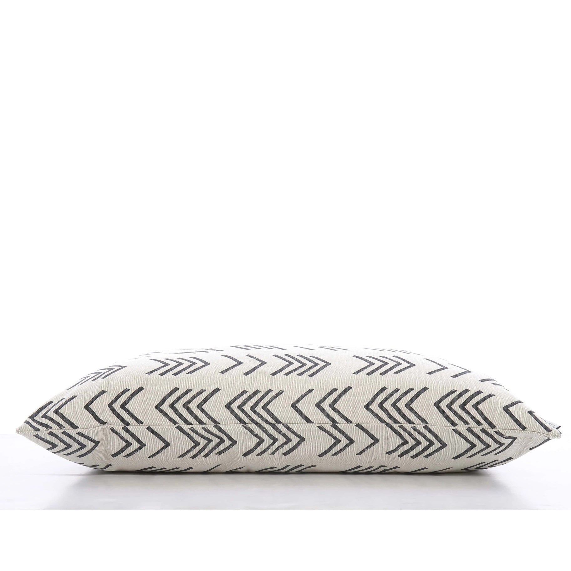 This boho minimalist dog bed features a chevron pattern inspired by mud cloth, a centuries-old African tradition of dying fabric with fermented mud. The cover is made from heavyweight upholstery-grade cotton fabric that is beautiful, durable, and machine washable. 100% Made in the USA.