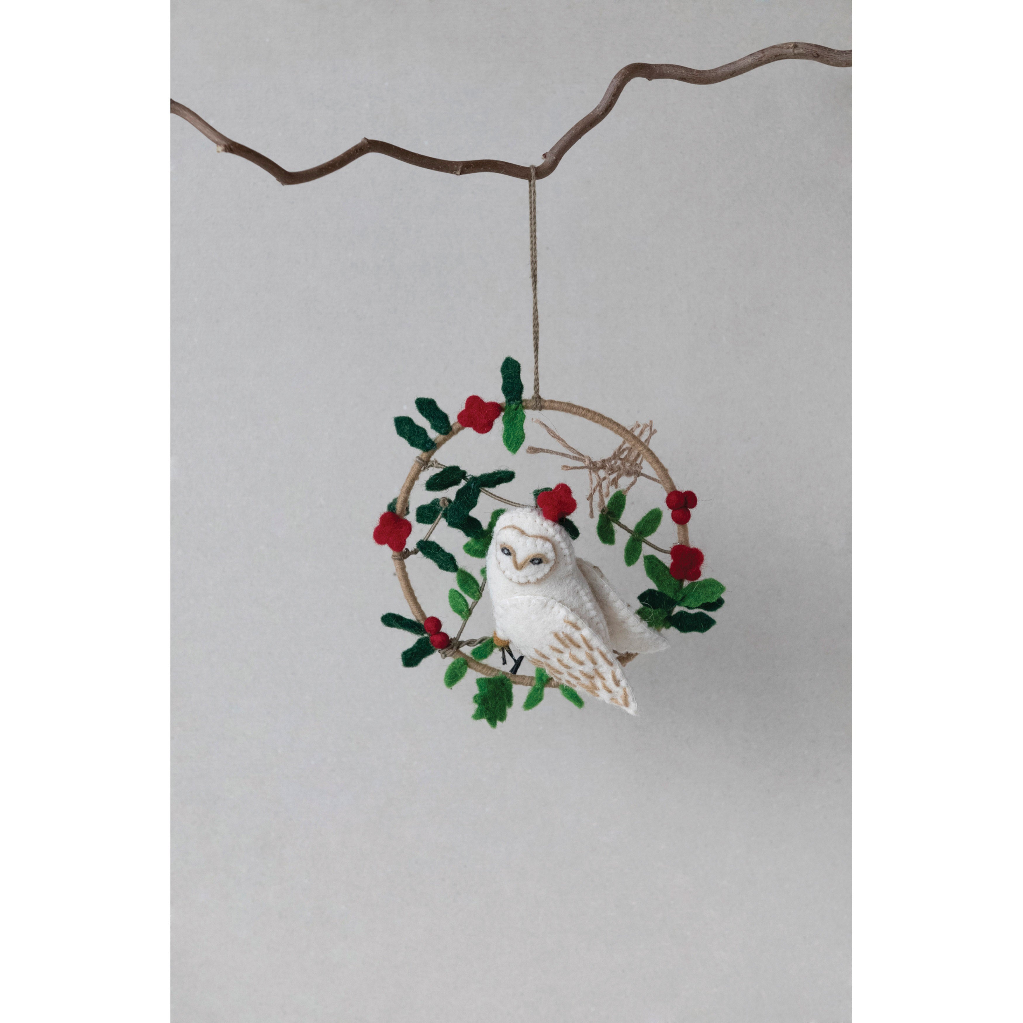 Felt owl in wreath