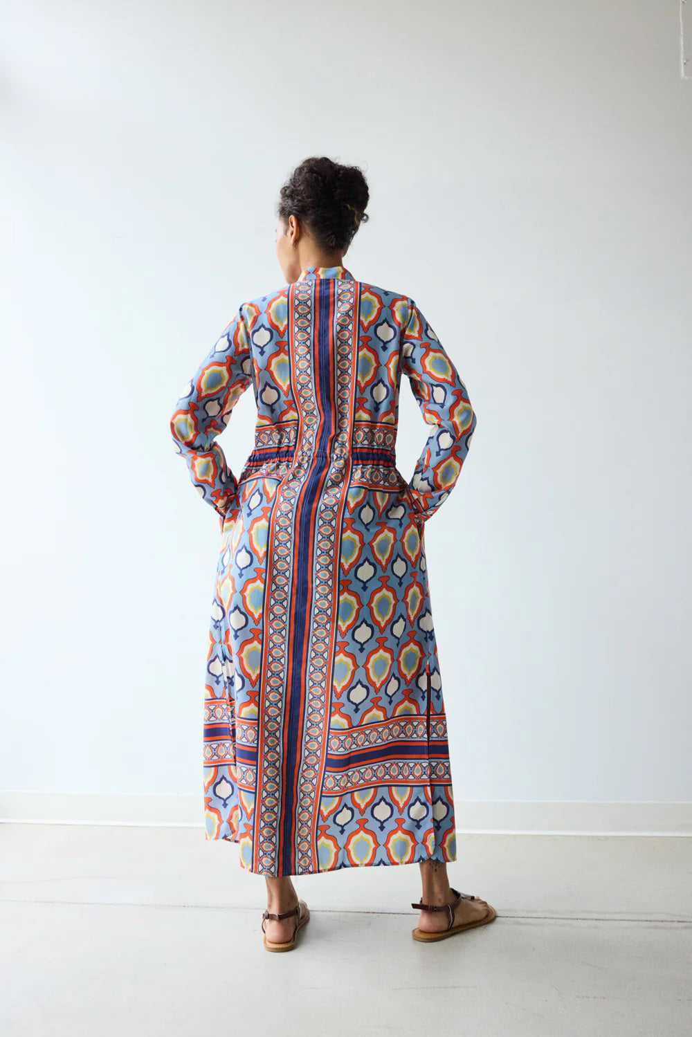 HOPE FOR FLOWERS - BAND COLLAR SHIRTDRESS IN CHAMBRAY MEDALLION