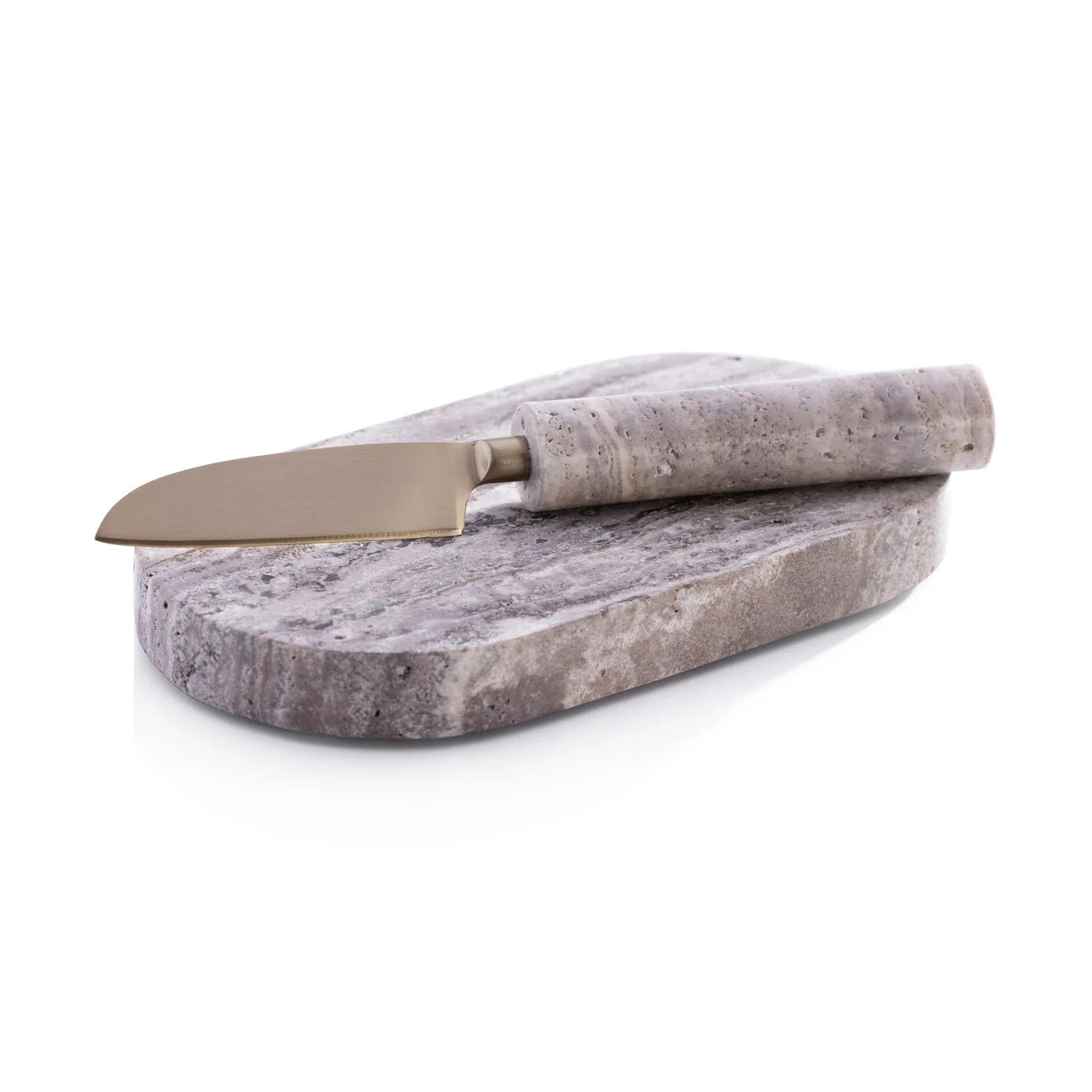 TRAVERTINE MARBLE CUTTING BOARD AND KNIFE