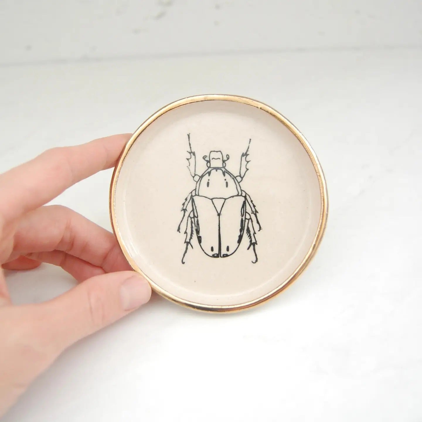 Crafted from screen-printed white stoneware and fired to cone 5, this piece features an elegant 22k gold rim.