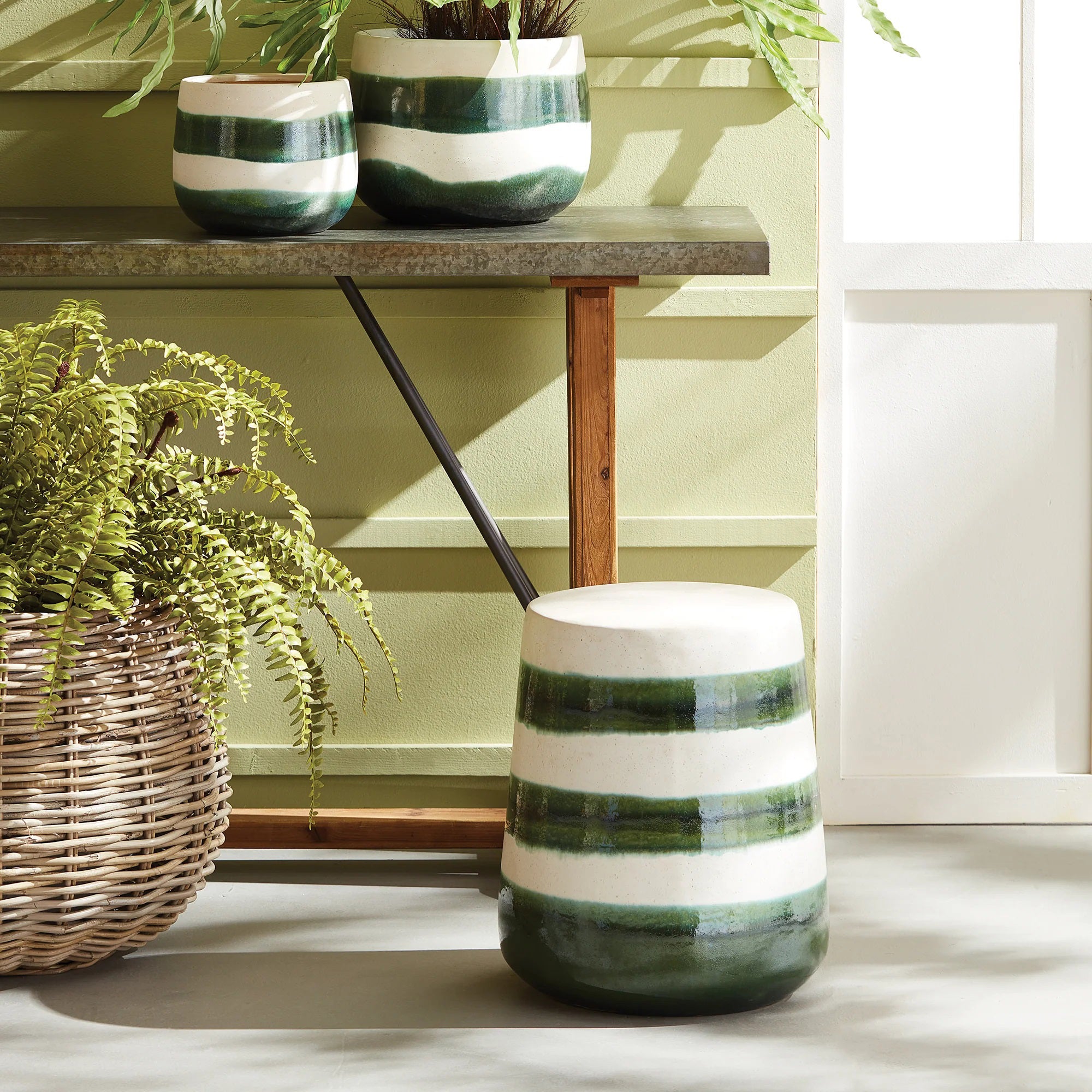 This hand-painted stool is whimsical and fun. A touch of green is always welcome to add a natural element to any space.