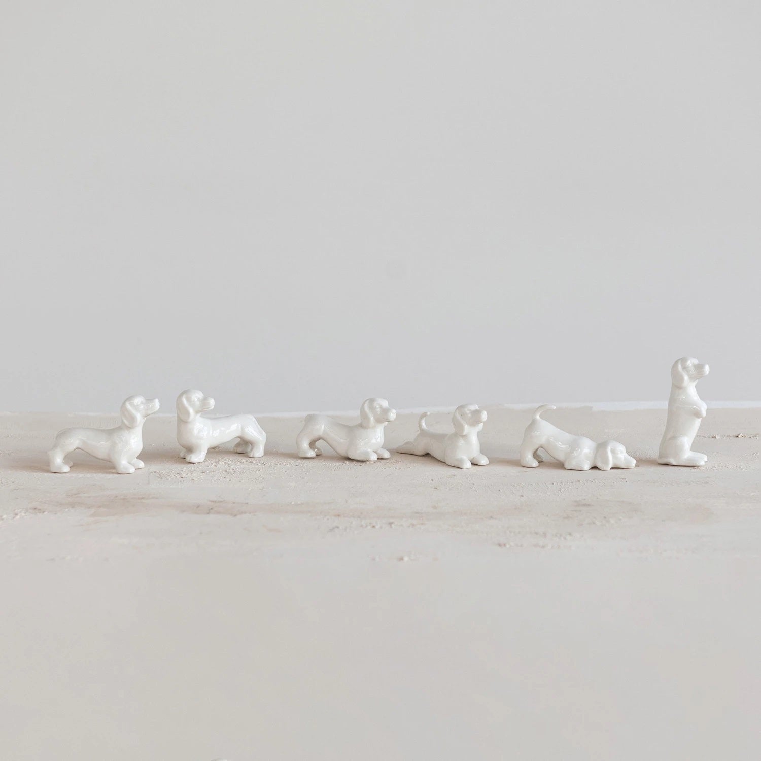 1-3/4"L - 3-1/2"L Stoneware Dogs, White