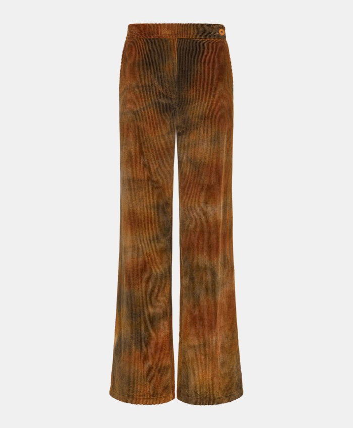 Slightly flared leg pants in tie-dyed corduroy. Waistband with extension tab fastened with a button. Two large patch pockets at the back. Made in Italy.