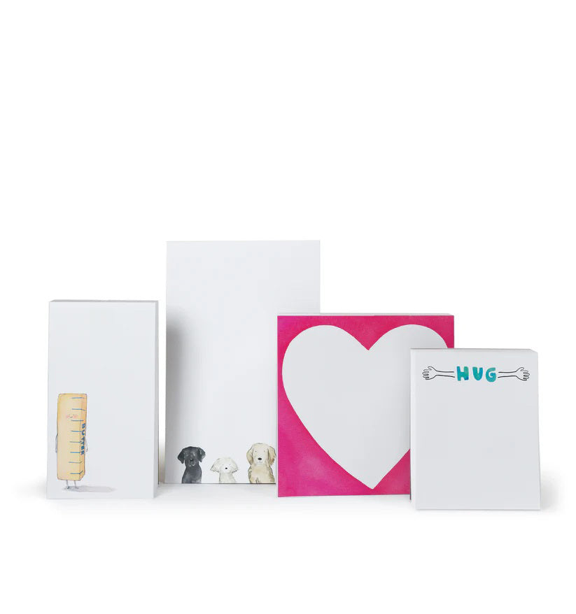 We're partial to luscious, substantial notepads. We want your pen to have a racy affair with your paper everyday. We want list-making, doodling, and note-taking to feel good. AND we want them to be made from recycled paper!