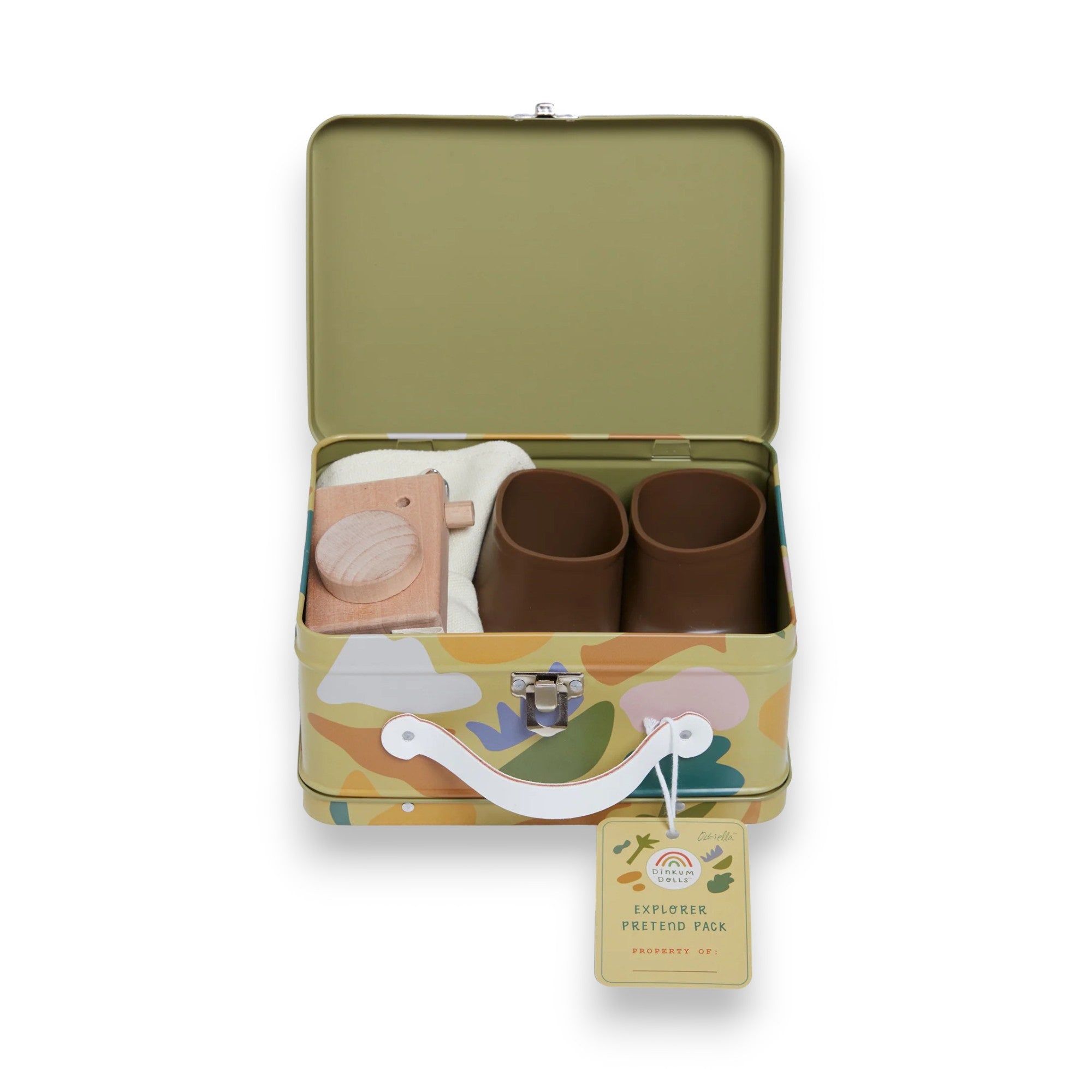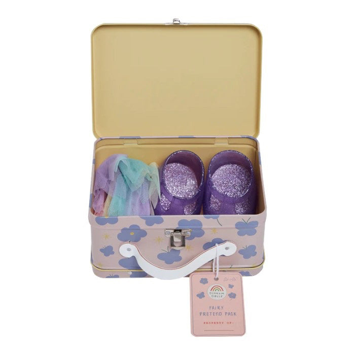 Extend the world of Dinkum Doll play with pretend packs for big fairy filled magical adventures! Packaged in a collectible printed Tin with a leather handle, our Pretend Packs are designed to roam wherever play may go!