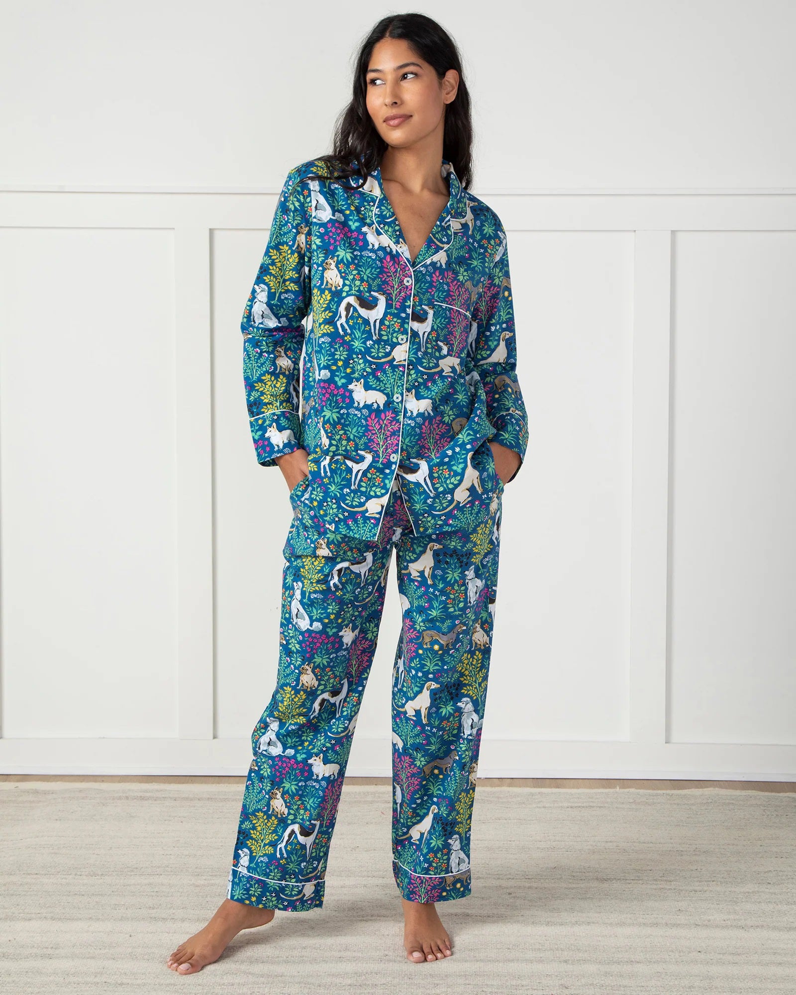 The cutest pajamas come homeward-bound to you. Made from organic cotton poplin. Wash, wear & repeat. This set gets softer with every cycle. Lovingly designed in Philadelphia then hand screen-printed by artisans in India. Pockets for storing essentials.
