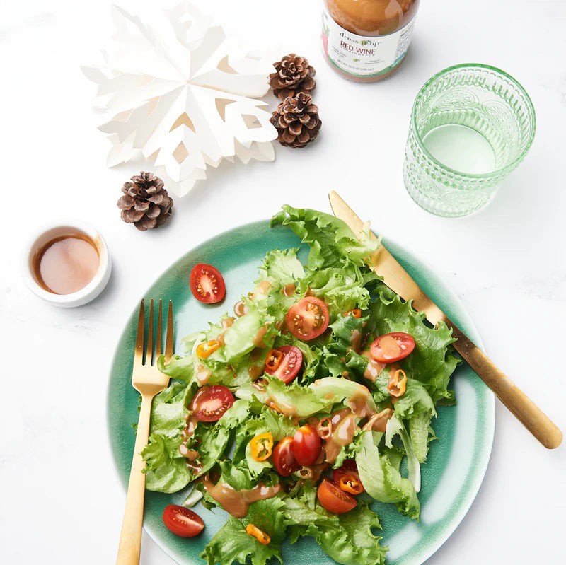 A well-made vinaigrette offers a perfect balance of flavors: the richness of the olive oil, acidity and bite of the red wine vinegar, sweetness from the balsamic vinegar, and the kick of garlic and mustard. Our Red Wine Vinaigrette delivers on every count and does so with a luxurious creamy consistency clinging to the lettuce leaf and leaving none wasted. Ways to Style