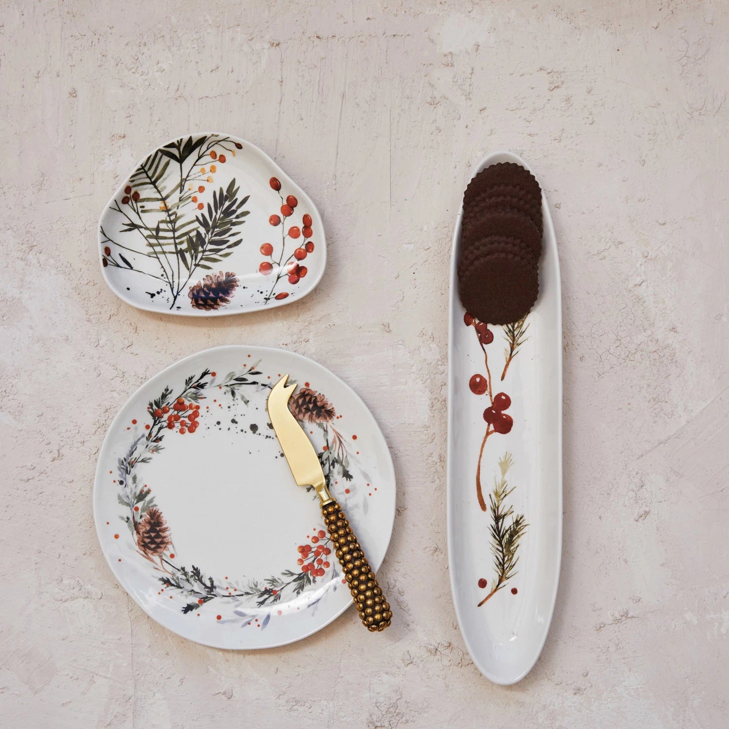 This stoneware seasonal botanical plate is a beautiful and functional addition to the home. The plate features a seasonal botanical design that includes flowers, leaves, and berries, creating a vibrant and natural effect. The plate also has a scalloped edge that adds a touch of elegance and style. The plate is made of stoneware, which is a durable and high-quality material, with a multicolor reactive glaze finish that gives it a unique and varied look. Each plate is slightly different, making it a one-of-a-kind item. The plate can be used for serving food, snacks, or desserts, or as a wall hanging or a gift. The plate measures 8 inches in diameter. This stoneware seasonal botanical plate is a wonderful gift for anyone, especially for enjoying special food and occasions. A lovely and colorful plate with a seasonal botanical design and a scalloped edge. A charming and versatile piece that can match any spring or summer-themed table setting or kitchen decor. A practical and durable plate that can be used for serving food, snacks, or desserts, or as a wall hanging or a gift.
