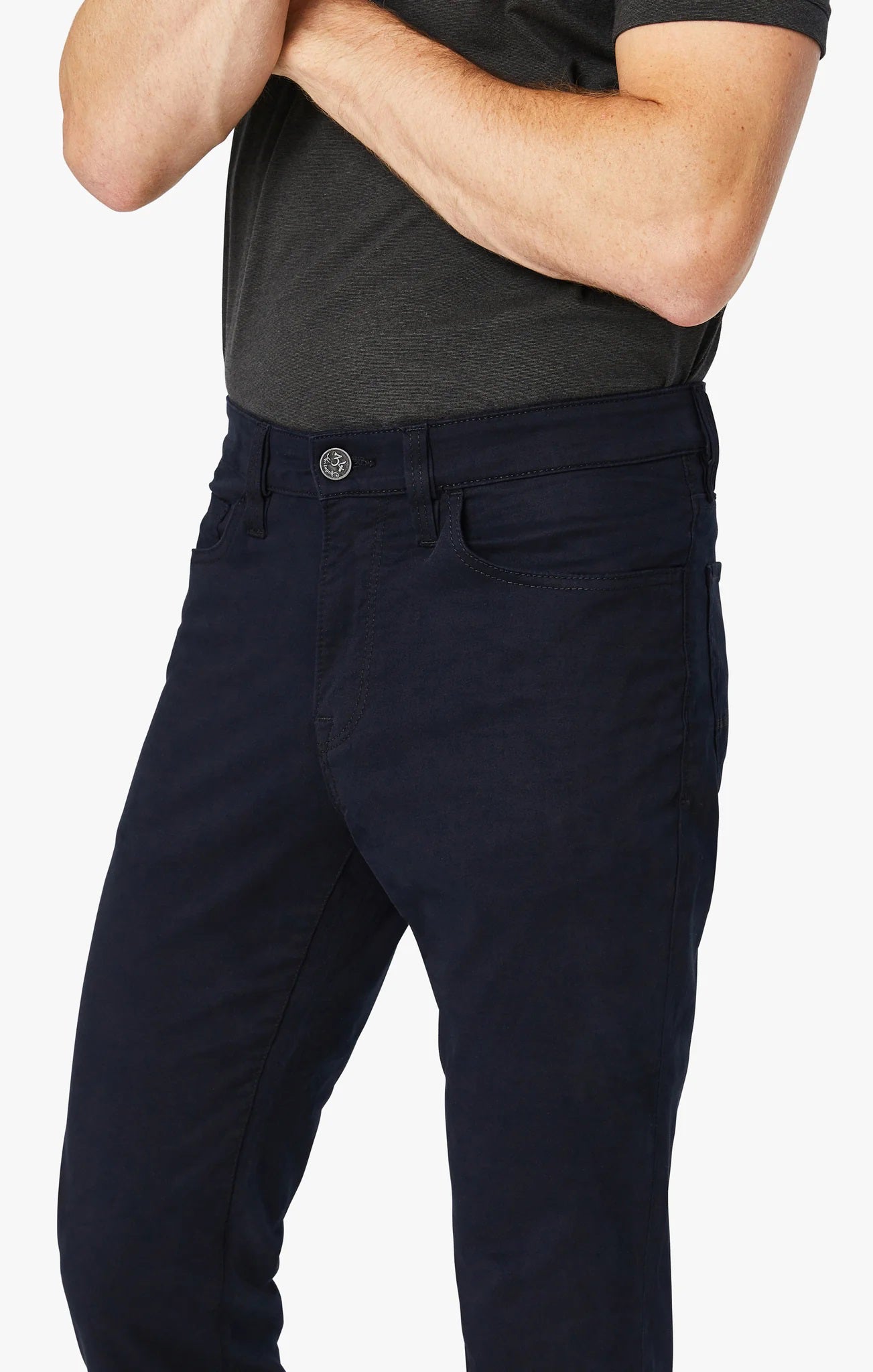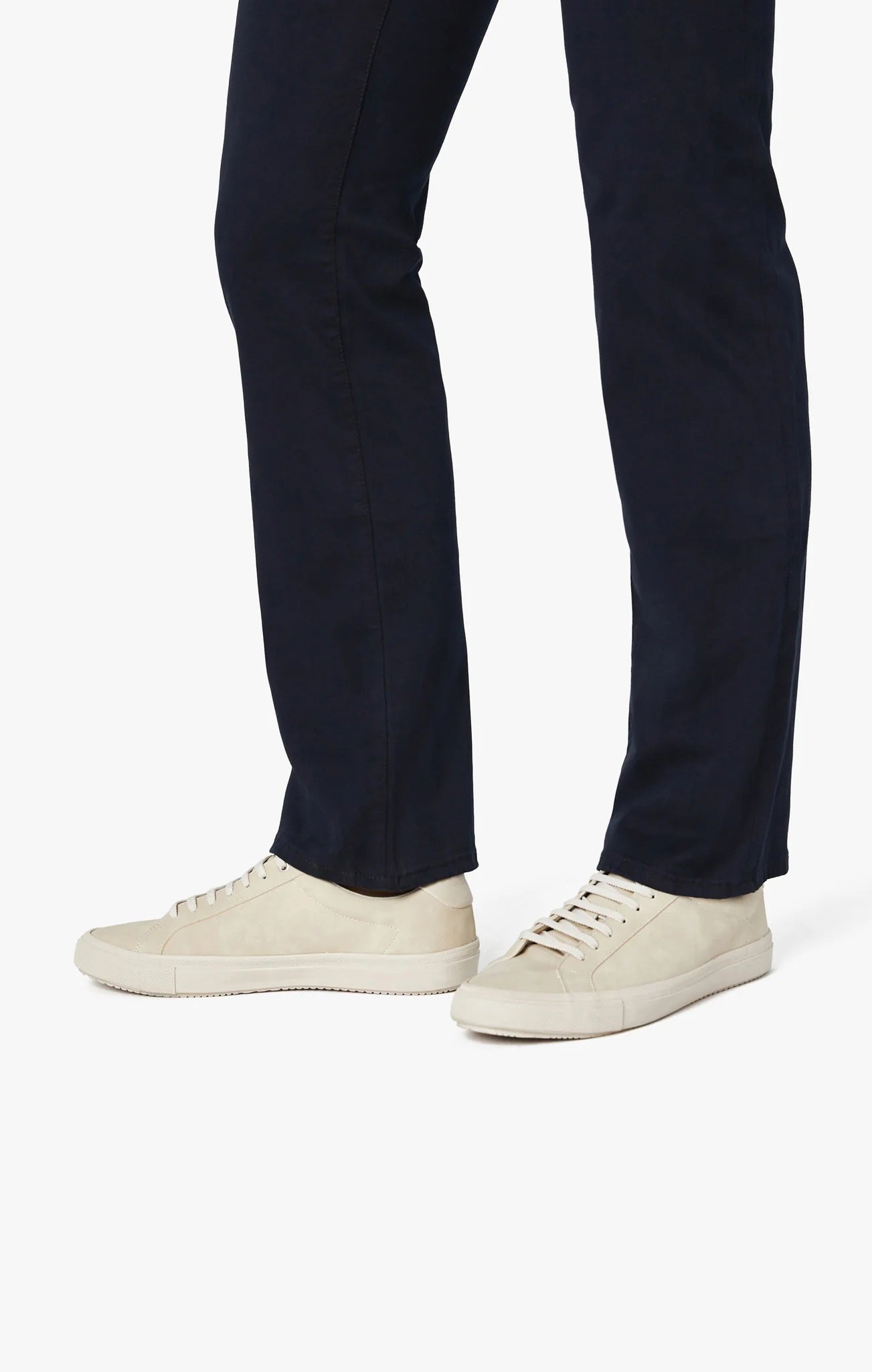 Fit: Relaxed straight leg, classic silhouette Fabric: Supremely soft blended twill with velvety brushed texture Comfort: High-stretch elastane for flexibility and ease Lightweight: Feather-light, breathable, and luxurious to the touch Waistband: Elastic and reinforced for all-day comfort and durability Color: Deep navy for versatile, elevated styling
