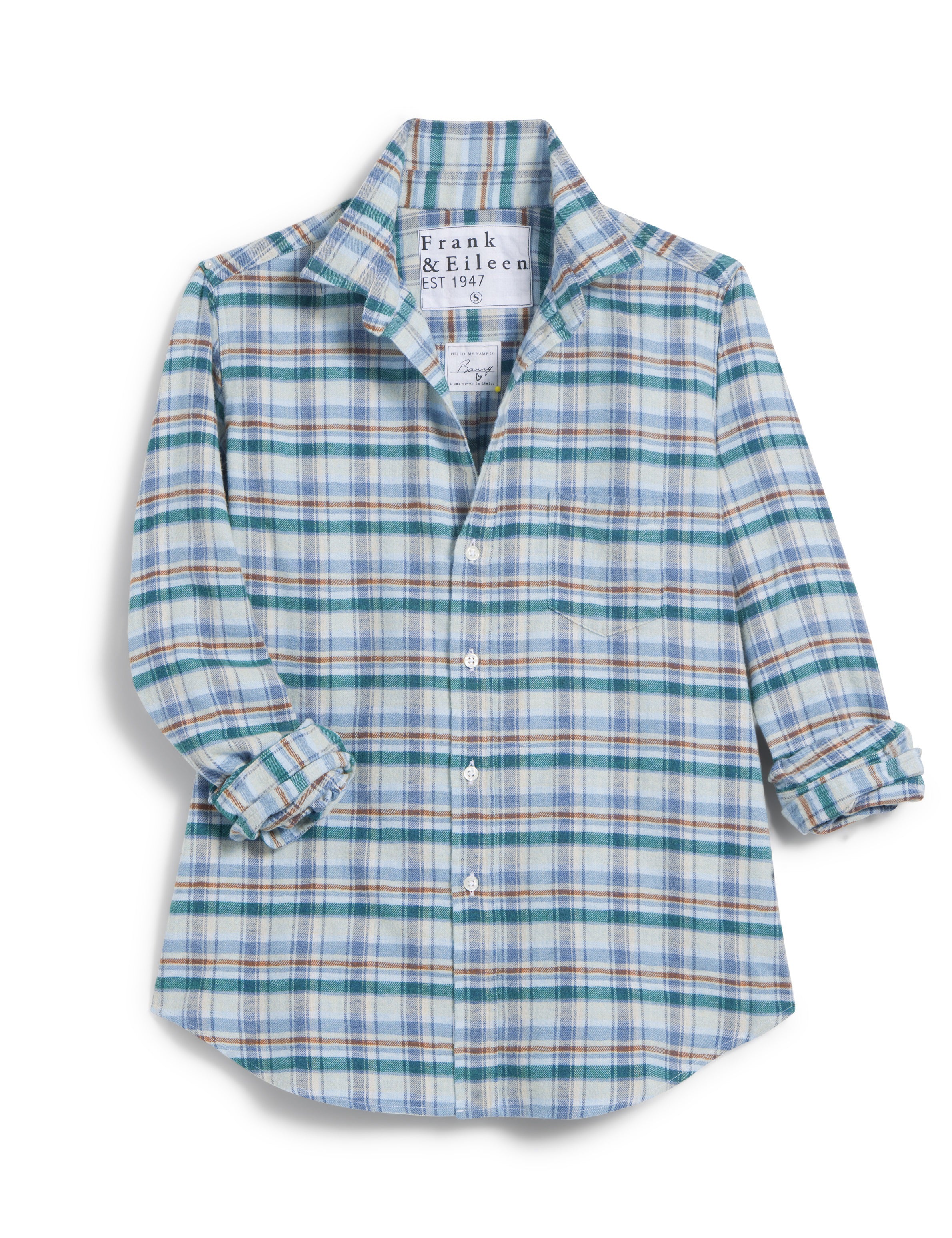 FRANK AND EILEEN - BARRY TAILORED BUTTON UP IN CREAM GREEN BLUE PLAID ITALIAN FLANNEL