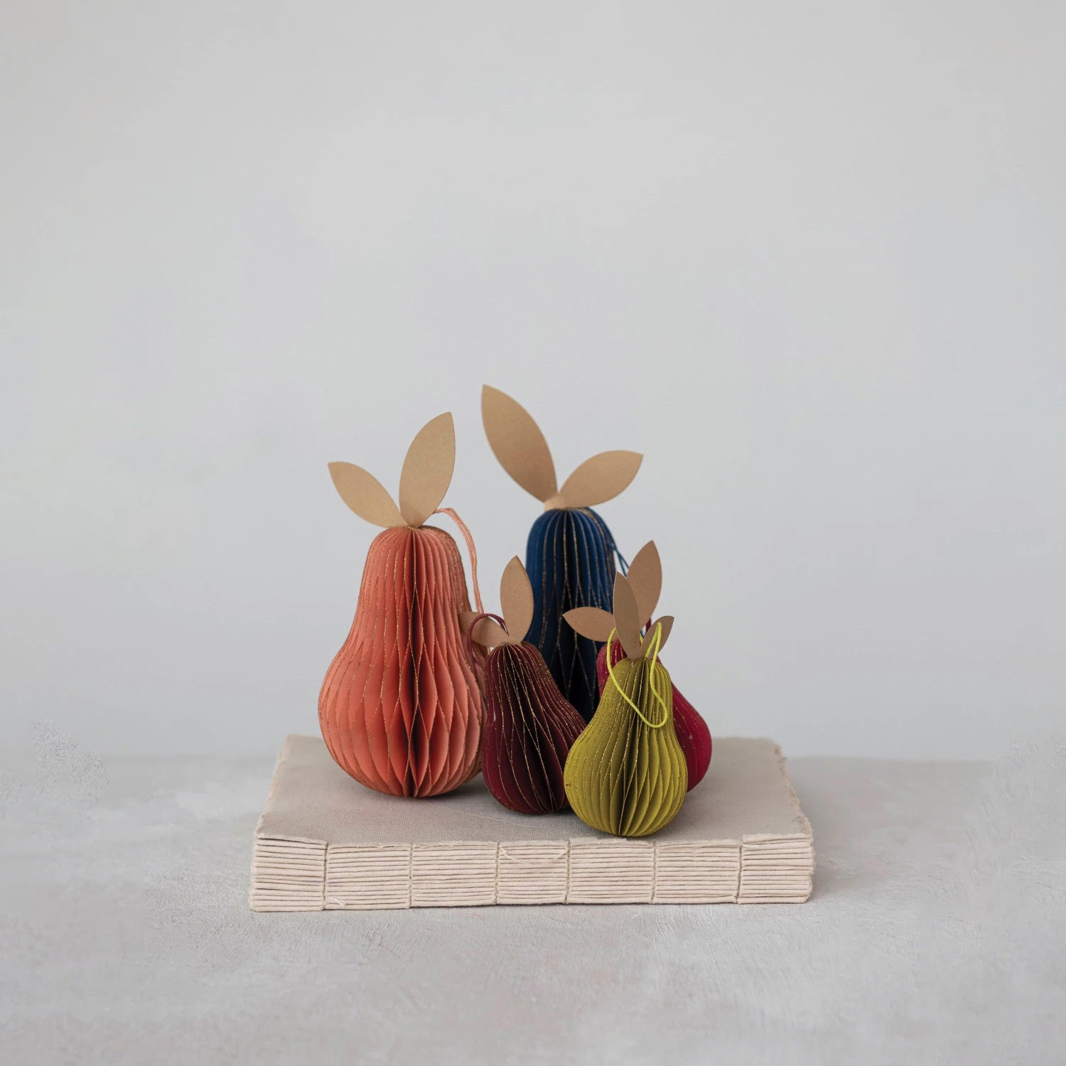 HANDMADE RECYCLED HONEYCOMB PAPER PEAR ORNAMENT
